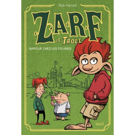 Au collĂšge de Cogagne, la vie est dure pour les trolls moquĂ©s et mĂ©prisĂ©s de tous. La famille de Zarf vit sous un pont. Ses seuls amis sont Kevin Petit-Cochon (c’est son nom de famille, son groin en tĂ©moigne) et Chester, destinĂ© Ă succĂ©der Ă son pĂšre, bouffon du roi, qui Ă©grĂšne des blagues lamentables (genre toctoctoc…). Zarf a surtout un ennemi acharnĂ©, le prince Roquefort, odieux rejeton du bon roi ChĂ©zenote qui a aboli les lois anti-trolls. DĂšs lors, est-il judicieux de rosser le prince (qui l’avait bien cherchĂ©) au moment oĂč le roi est enlevĂ© par les gigantesques et horribles farfouines ?  Ce roman de collĂšge est classique, avec blagues foireuses (hĂ©las !), humour scato, brimades et clins d’oeil au folklore : Boucles grises en vieillissant a cessĂ© de voler le repas des autres et joue les cantiniĂšres – Ă l’occasion de bon conseil. Dans ses illustrations nombreuses, l’auteur, connu pour ses BD, caricature avec talent hommes, bĂȘtes et monstres de ce petit monde fantastique. On rit de ces gardes du roi affublĂ© de l’uniforme des gardes suisses du pape. Mais Ă 9 ans ? Pour la morale, le rĂ©cit dĂ©crit les efforts mĂ©ritoires de Zarf pour dompter sa sauvagerie de troll, et dĂ©nonce la tyrannie et le racisme du prince au pouvoir. Mais le rĂ©cit traĂźne en longueur, les effets sont appuyĂ©s et on s’interroge sur la suite annoncĂ©e pour 2016. (R.F. et L.L.-D.)