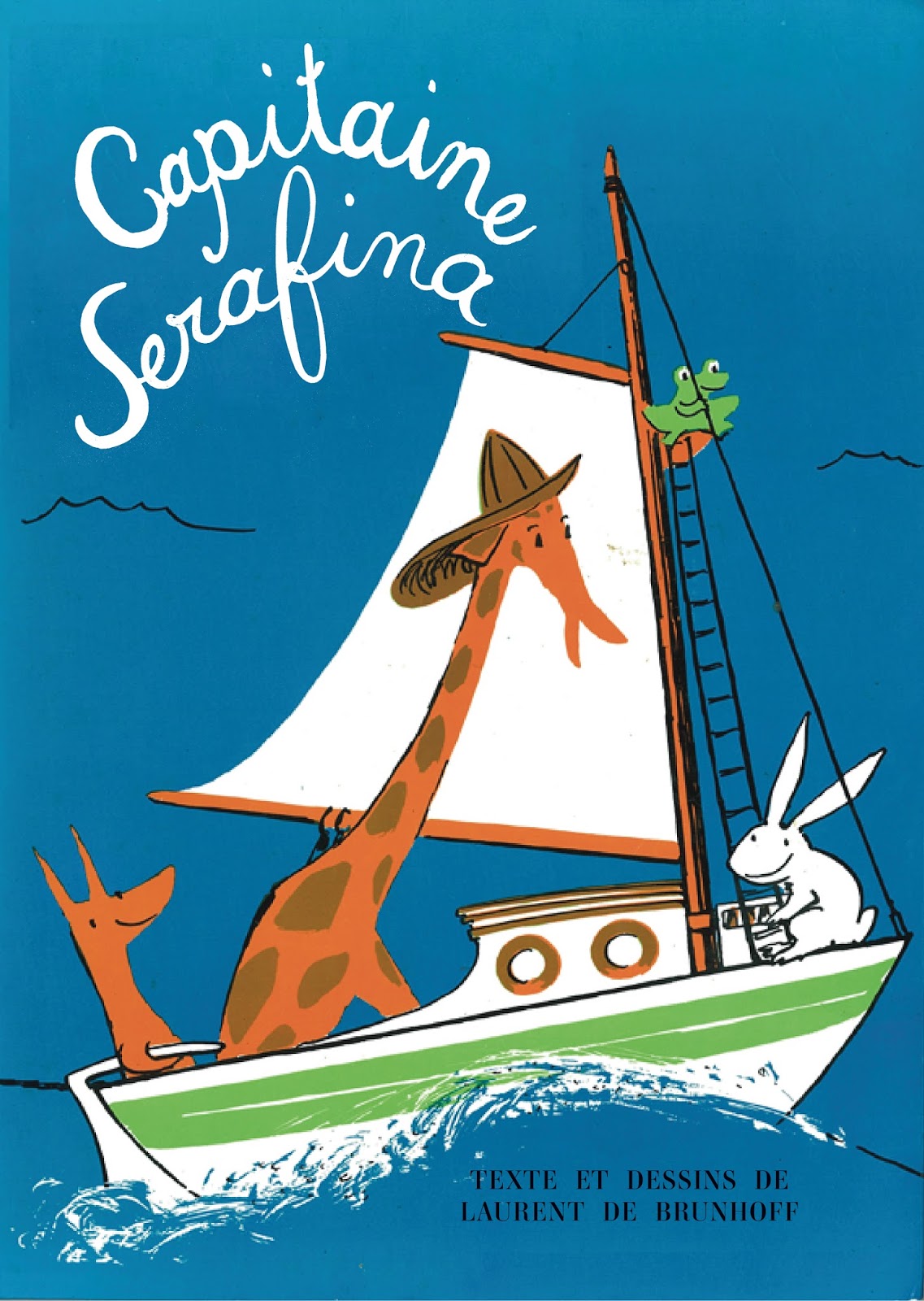 La jeune girafe rentre de ses vacances chez ses grands-parents, sur son propre bateau. Pour l’aventure, elle est secondĂ©e par BĂ©ryl la grenouille, Ernest le crocodile, Patrick le lapin et Hugo le kangourou. Il faut ajouter un youyou derriĂšre La Libellule tant il y a de bagages. Ernest veille sur eux. Sur le fleuve il faut nĂ©gocier avec les rochers, sur la mer arroser BĂ©ryl avec l’eau potable car elle ne supporte pas le sel. L’orage menace, la tempĂȘte se dĂ©chaĂźne, Ernest est perdu… L’inquiĂ©tude est de courte durĂ©e ; cette patrouille de Castors juniors, soudĂ©e par les Ă©preuves, est accueillie par M. et Mme Girafe sur leur trente-et-un : noeud papillon et collier de perles, de mĂȘme que la grand-mĂšre arborait une charlotte et des bĂ©sicles, tĂ©moignant du souci de la toilette propre aux hĂ©ros des Brunhoff. Un choix de bleus et de verts met en valeur le bel orange de Serafina et de sa famille. La libertĂ© du trait, la fantaisie de cet univers enfantin et exotique se dĂ©guste Ă tout Ăąge, dĂšs 3 ans. InĂ©dit en France. Paru en 1963 aux Ătats-Unis. (R.F.)