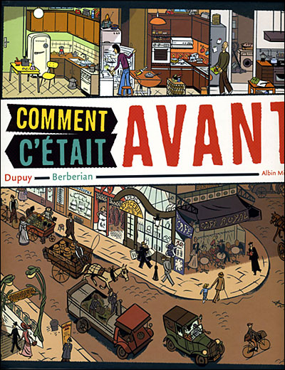 Une rue de Paris, choisie pour ses archives photographiques, est représentée à quatre périodes différentes : 1920, 1950, 1970, 2000. Dans ce jeu d’observation, le lecteur s’amusera à noter ce qui est resté identique ou presque : le café, la boulangerie ; la bouche de métro perd ses édicules entre 1950 et 1970 ; disparition des marchandes des quatre saisons ; apparition plus récente des horodateurs et des embouteillages. Sur le même principe, dans la deuxième partie, le lecteur découvre les différentes pièces d’un appartement bourgeois à ces mêmes périodes : changement de mobilier, progrès technologiques (apparition du téléphone, de l’électroménager puis de l’ordinateur). La dernière partie reconstitue une ferme francilienne. Chaque double page, vierge de texte, est suivie d’une page de commentaires sur certains détails du dessin. Un documentaire intéressant et ludique que le lecteur prendra plaisir à compulser, pour avancer ou reculer dans le temps, chercher la différence, vérifier un détail. Un regard, pour mesurer la lente et constante évolution de la société.