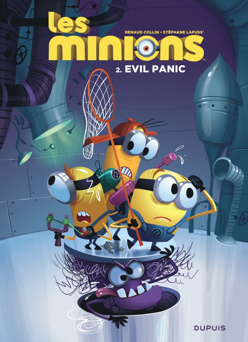 Les minions sont au service de Gru, le héros de Moi, moche et méchant. La notoriété et le succès de ces petits cyclopes jaunes en salopette sont telles qu’ils ont gagné le droit d’avoir leur propre film et leurs propres bandes dessinées. Ce deuxième tome s’ouvre sur l’inhalation malheureuse par un minion d’une bombe de peinture, qui le transforme en affreux jojo violet et chevelu. Une gaffe plus tard, les mutants sont devenus nombreux, et font des apparitions récurrentes et destructrices dans les gags. L’administration d’une antidote clôt l’album. Louvoyant entre loisir (barbecue, concours de châteaux de sable sur la plage), labeur quotidien et inventions mal utilisées, les sketchs s’autorisent beaucoup de fantaisie. Gourmands, maladroits, individualistes, inventifs, les minions ont effectivement un potentiel comique élevé. Comme ils sont muets, leurs aventures sont uniquement visuelles, et -parfois- exigent une attention soutenue afin d’en comprendre le ressort comique. Le dessin, façon 3D, est vif et lisse, les couleurs variéees et nuancées tout en étant très pop. Ludique et distrayant. (M.D.)