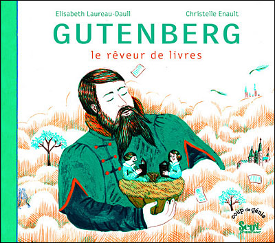 Déjà, écolier, Johann Gensfleish zur Laden zum Gutenberg rêvait que chaque enfant possède son propre livre et plaignait les moines copistes. Il savait que les gravures sur bois existantes étaient loin d’être satisfaisantes et pendant des années, à Mayence puis à Strasbourg, il est obsédé par l’idée qu’il doit trouver le moyen de reproduire rapidement et d’imprimer des livres. C’est en travaillant et poinçonnant le métal dans sa fabrique d’insignes qu’il va développer le concept de caractères mobiles en métal. Sa biographie, destinée aux enfants du primaire, succincte et claire, souligne la persévérance du chercheur, enfermé dans son atelier, qui essaie et recommence jusqu’à trouver le bon alliage. De larges illustrations originales aux couleurs douces, évoquant le Moyen Âge, agrémentent la lecture.