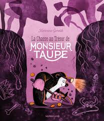 Chaque soir, dans la grande forêt, Maître Blaireau réunit chez lui tous ses amis pour leur lire une histoire. Ce soir-là il commence un album intitulé La chasse au trésor ; la fin sera pour demain… Rentré chez lui, Monsieur Taupe ne peut pas dormir ; il veut partir à la chasse au trésor. Seulement le livre n’a pas encore révélé ce qu’était un trésor ; il sait juste que cela se passe en général sous terre ! Bien décidé, il part quand même à l’aventure avec pelle et lampe … Cette chasse au trésor, à laquelle l’enfant lecteur participe avec Monsieur Taupe, est une suite de découvertes et de péripéties qui se passent en sous-sol tandis que sur la terre ferme, loups et renards mènent une autre vie. L’humour naît de l’ignorance du protagoniste, qui dédaigne couronnes et émeraudes. L’image, à grands traits, en technique mixte, occupe tout l’espace de la double page, sans laisser de place au blanc du papier, dans une alternance de couleurs qui jouent avec le noir du sous-sol et de la nuit. La fin se termine par une jolie pirouette en forme de fable. Finalement qu’est-ce que le vrai trésor ?… (M.-T.D.)