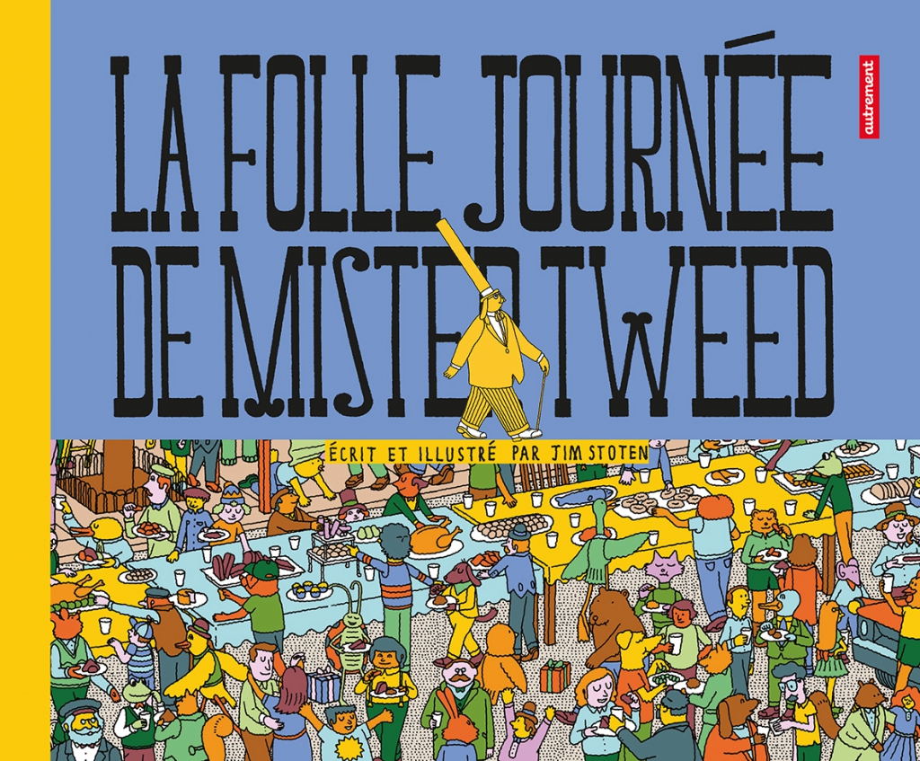 Mister Tweed promène sa silhouette discrètement bedonnante et son couvre-chef qui mérite bien l’appellation de tuyau-de-poële, sollicité par tous ceux qui ont perdu quelque chose : Ali Gator a lâché 1 cerf-volant, Miss Bigoudi pleure 2 chatons, Martin Mac Miaou cherche ses 3 souris égarées dans la bibliothèque. À chaque fois, il faut tourner la page et découvrir une double page saturée d’illustrations dont les couleurs privilégient les verts et les orangés. Sauf dans la piscine où 4 poissons rouges s’ébattent dans un bassin rempli de nageurs, jouets et autre Nessie. Il n’est guère plus simple de dégotter 5 flèches dans une forêt aux tons sourds… de bois ! Ou 6 ananas dans un marché très animé aux chalands bariolés. Le décor fouillé, les surfaces striées ou pointillées ne facilitent pas la tâche de Mister Tweed, récompensé dans la dernière séquence par une grande fête de rue – un repas des voisins – où l’attendent 10 paquets-cadeaux, soigneusement dissimulés. Un livre à compter, livre-jeu avant tout où la richesse des images égare et retient le regard. Rien n’empêche, quand on maîtrise bien le parcours, de se fixer d’autres objectifs (combien de canards, de chapeaux, d’oiseaux ?) pour continuer à jouer seul ou à plusieurs.(R.F.)