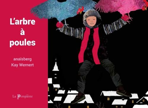Le noir de la nuit contraste avec le blanc de la neige. Un enfant et sa mère, bien emmitouflés, admirent le bonhomme de neige qu’ils ont construit. Soudain, le petit garçon aperçoit des poules de couleur perchées dans un arbre ; étrange ! Plus surprenant encore, l’une d’elle invite Thomas au voyage. L’enfant hésite, sa mère l’encourage… départ pour un vol au-dessus du village.Avec ce petit album souple qui rappelle les premiers livres du Père Castor, la nouvelle maison d’édition La Pimpante frappe fort par la qualité graphique des illustrations et un récit simple et poétique. Le jeu des couleurs sur les fonds noirs ou blancs est aussi nuancé que lumineux ; les personnages par leurs vêtements et leurs postures font ressentir l’atmosphère glacée d’une nuit hivernale, réchauffée par la tendresse de la relation mère-enfant et l’aspect merveilleux du voyage à dos de volatile.