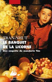 Les fidèles lecteurs des soeurs Tran-Nhut (cf. L’aile d’Airain, NB octobre 2003) retrouveront avec plaisir le mandarin vietnamien Tân, du XVIIe siècle, au flair policier subtil et infaillible. Pour honorer un nouveau percepteur, Tân offre un banquet à son entourage habituel : le directeur de la prison, un médecin, un tailleur, un apothicaire, un lettré, une poétesse exaltée. Au cours de ce long festin où les mets nombreux et succulents se succèdent lentement, chaque convive est amené à évoquer une énigme non résolue : vol, escroquerie ou mort suspecte. Les autres participants suggèrent des hypothèses, mais tous s’en remettent à la sagacité de leur hôte.