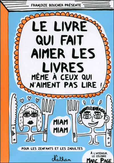 Cet ouvrage se lit comme on veut et dans le désordre, M. Marc Page( !) est là pour aider à se repérer ! En utilisant une grosse écriture et des dessins volontairement enfantins illustrés de couleurs fluo orange et bleu, Françoize Boucher renforce le côté délirant de ses conseils. Ceux-ci auront-ils une réelle influence sur les non-amateurs de livres ? 9/10 ans.