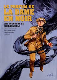 Mathilde Stangerson peut sereinement épouser Robert Darzac à Saint-Nicolas du Chardonnet. Frédéric Larsan, l’infâme Ballmeyer, est mort noyé dans le naufrage de La Dordogne. Mais Rouletabille n’y croit pas et, sans attendre la fin du mariage, il emmène son ami Sainclair au Tréport et au parloir du collège d’Eu, là où, dans ses bras, il respirait le parfum de la dame en noir. Il ouvre alors le message de Mathilde et révèle à Sainclair son secret : il est le fils de Mathilde… et donc de Larsan ! Ce même Larsan a été aperçu dans le train suivant les jeunes mariés. Tous décident de se barricader aux Rochers Rouges. Jean-Charles Gaudin a conçu pour Le parfum de la dame en noir, la suite du Mystère de la chambre jaune, un scénario très rythmé, alternant rebondissements et suspense en parfaite symbiose avec le talent de Gaston Leroux. Les relations entre les personnages sont adroitement présentées, laissant souvent le lecteur s’égarer… Le dessin réaliste et précis alterne entre couleurs vives et épisodes sombres illustrant l’ambiance pesante du récit. Au final, une BD fort plaisante, qui devrait être suivie d’autres enquêtes de Rouletabille. (C.D. et D.L.)