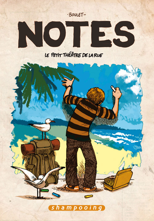 Les notes de Boulet, Le petit théâtre de la rue, reprises ou complétées sur son blog sont des souvenirs, des élucubrations ou des fantasmes autour de sa vie d’auteur de BD. Elles nous promènent de son appartement à ses voyages réels ou imaginés (Nouméa, Cameroun, La Réunion, Tchad), et surtout au festival « Creuse ta bulle » d’Aubusson et ses séances de dédicaces. Ce sont des billets d’humeur et d’humour sur la vie, le travail, le sexe, la musique, la cuisine, la télé…
