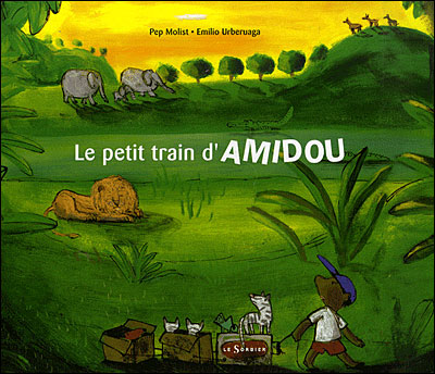 Comme tous les enfants du monde, Amidou, le petit Sénégalais, a construit un train avec des boîtes, remplies de passagers. Amidou a imaginé deux itinéraires, dont l’un le conduit le matin, à travers la savane, de sa maison jusqu’au village où son grand-père, sous un baobab, raconte des histoires aux enfants. Le second fil ramène le petit train le soir, par un autre chemin, à travers la jungle où rugissent les lions. Amidou s’arrête dans les gares des villages et retrouve sa mère, mais la nuit venue, le petit train poursuit seul son chemin. Les peintures hautes en couleurs rappellent la luminosité africaine aux différentes heures du jour, mais on regrette le manque de réalisme de la « maison » d’Amidou, et du lion paisible comme un chat quand l’enfant traverse une nature très civilisée, image en contradiction avec le texte, sans que l’humour opère.