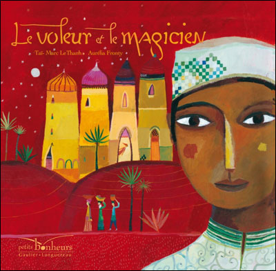 Chaque double page est un régal de composition, dans un graphisme moderne aux couleurs chaudes et éclatantes, où rouge et turquoise dominent. Les personnages évoluent comme dans un rêve, le regard perdu au loin sous des étoiles fantaisistes. Tout à la contemplation, on en vient à oublier l’histoire compliquée de ce garçon qui parvient à enlever sa bien-aimée à son père après trois tentatives.