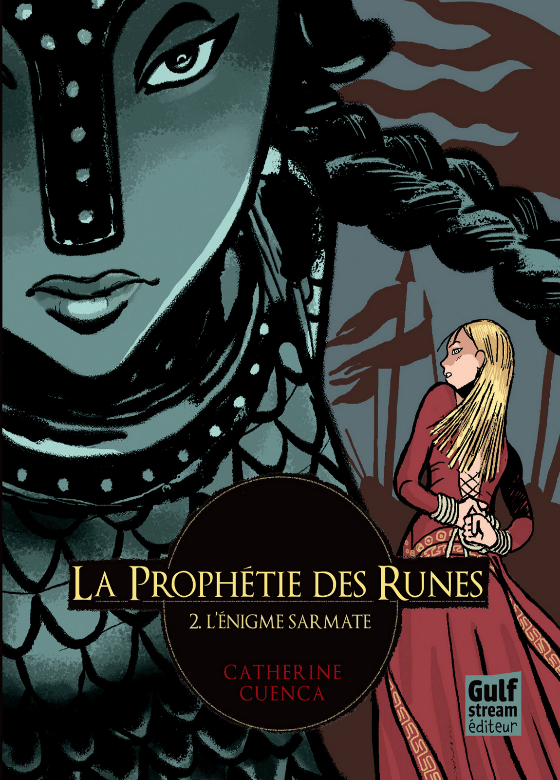 Après qu’Attila a été arrêté près de Troyes, Mogiane regagne son domaine de Tournai, pensant savourer enfin les joies de son mariage avec Friedhelm. Las ! C’est pour découvrir l’enlèvement du roi Childéric. On soupçonne une bande sarmate. La jeune Franque reprend la route, chargée de négocier une rançon, guidée par une jeune Amazone, et conseillée par l’évêque de Troyes. Mogiane découvre qu’il y a Sarmate et Sarmate, soumis ou opposé à Attila qui n’a pas oublié sa rencontre avec la jeune femme (La rouelle de feu, NB mai 2016).  Toujours curieuse des coutumes et des croyances, elle découvre les pratiques des peuples des steppes, croise de nouvelles tribus germaniques et fait de ses connaissances une arme dans sa chevauchée épique pour retrouver le roi et assurer la réalisation de la prophétie des Runes. De l’action, des notes brèves pour découvrir armes et dieux des uns et des autres, et un vrai suspense. La déesse de la mort se manifeste à nouveau ! À suivre. 10-12 ans. (R.F.)