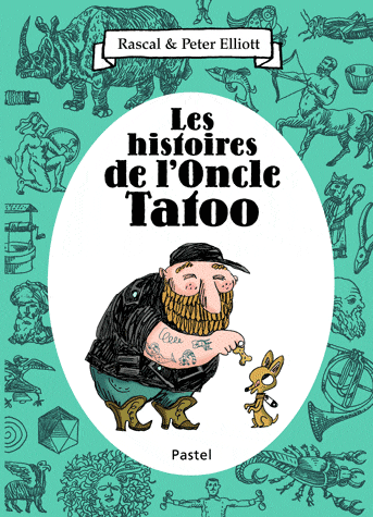 Grand gaillard bottĂ©, coiffĂ© d’une casquette, oncle Tatoo, comme son nom l’indique, est tatouĂ©! Et quand ses trois niĂšces lui demandent une histoire, ce sont ses tatouages qui l’inspirent : chaise, arrosoir, verre, moulin Ă vent, camĂ©lĂ©on. Un pauvre paysan fut dĂ©pouillĂ© de son arbre unique au monde, par le roi qui voulait en faire faire un trĂŽne… qui par magie redeviendra chaise pour le paysan ! GrĂące au gĂ©nie de l’arrosoir qu’il a libĂ©rĂ©, le jeune Laurent peut formuler un voeu : ce sera de continuer Ă aider le vieux Ferdinand dans son petit jardin, alors que le vieux en question ne voulait plus le voir… puisqu’il avait gĂąchĂ© son propre voeu. Cinq petites histoires farfelues, aux chutes plus ou moins inattendues, sont contĂ©es sur un ton vif, alerte et enjouĂ©. Elles sont ponctuĂ©es d’illustrations pleine page au crayon gentiment caricaturales, parfois situĂ©es dans des dĂ©cors photographiĂ©s, trĂšs annĂ©es 70. Une large typographie bien lisible pour cet album bien adaptĂ© Ă une premiĂšre lecture.