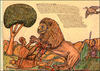 Dans ce très bel objet, au vaste format à l’italienne et à la tranche dorée, à la fois oeuvre d’art et documentaire, Dialiba Konaté cherche à transmettre par ses dessins toute la tradition et le bon sens de ses ancêtres. Les souvenirs de l’illustrateur sont empreints d’une certaine nostalgie et mettent souvent en parallèle passé et présent. Au-delà de la difficulté à lire les annotations manuscrites du dessinateur, avec un peu d’imagination on pourrait l’entendre conter la tradition, selon la transmission orale africaine. Les crayons de couleurs, précis et minutieux, créent de véritables tableaux qui approchent l’art brut, et achèvent de recréer toute l’ambiance africaine.
