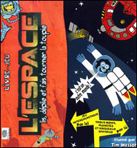 Côté pile, un documentaire sur le système solaire, dont le guide est un singe en costume de cosmonaute. Côté face, un jeu de l’oie dans l’espace, où les pions (détachables) sont des Martiens et des vaisseaux, et les cases des planètes, météorites, satellites, ou des bidons radioactifs ! Aux représentations réalistes des planètes (échelle comprise) se juxtaposent les dessins stylisés de sondes et autres objets volants identifiés (ou non), et fantaisistes d’extra-terrestres dingos passant par là. L’ensemble est un docu jeu qui ne se prend pas au sérieux, quoique délivrant les informations de base sur notre système et la conquête spatiale. Avec un peu de chance, ce joyeux accordéon (solidement cartonné) motivera les affreux jojos pour ranger leur chambre: le plateau de jeu fait quand même 2m80 de long !