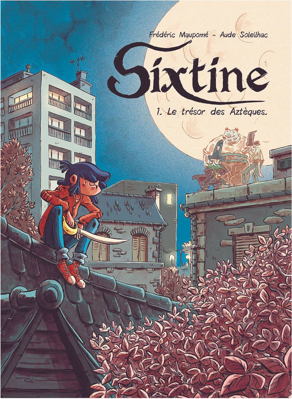 Le jour où la mère de Sixtine est venue disperser les cendres de son mari sur la plage, la fillette a fait la connaissance de trois fantômes de pirates. Neuf ans plus tard, Sixtine est devenue une collégienne dynamique et les fantômes sont toujours là, à veiller sur elle, lui apprendre leurs tours et l’accompagner dans son quotidien. La mère peine à joindre les deux bouts et un huissier menace de saisir la maison familiale ; alors Sixtine se met en tête, conseillée par les pirates, de voler le coffre au trésor aztèque exposé au musée local… Sixtine est une héroïne attachante, un pied dans la vie actuelle, où elle est entourée de deux amis fidèles, et un pied dans un imaginaire pirate parfois encombrant – leurs interventions intempestives en classe ne facilitent pas sa concentration. Les fantômes sont traités comme un élément comique et tendre. À l’amitié et aux difficultés matérielles se joint le thème de la recherche des origines, la famille du père étant un tabou maternel. Le dessin souple aux dominantes chaudes croque un environnement de petite ville coquette où évoluent des personnages expressifs. Le fantastique s’épaissit en fin d’album. Un bon tome d’exposition, à suivre. (M.D.)