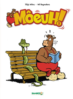 Une vache (ou un boeuf) en salopette rouge est l’héroïne (héros) principal(e) de cette BD composée de strips de trois cases en majorité, parfois deux ou quatre. Les autres protagonistes, nombreux et variés, sont également des animaux : un chien (qui ressemble à Rantanplan), un castor, un caméléon, un tamanoir, une girafe, un zèbre, un gorille… La vache est totalement anthropomorphisée : elle joue au golf, pêche, grille son poisson, s’abrite sous un parapluie, etc. Pour les autres, c’est variable.   Décalage et absurde sont à l’ordre du jour dans ces strips muets, aux titres en onomatopées. Il y a également une pointe de cruauté, car les lois de la nature sont impitoyables ! L’humour (c’est le principe) et l’invention sont omniprésents, et l’on est rarement déçu par les gags. Le dessin, classique dans le genre humoristique, concentre l’attention sur les personnages en laissant le décor en noir et blanc. C’est surprenant et réussi dans l’ensemble : une bonne découverte. Plusieurs albums sortent presque simultanément. (M.D.)