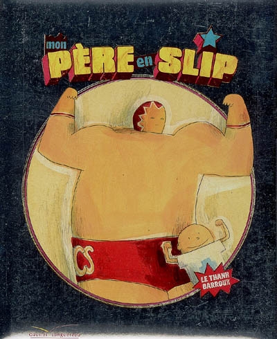 Et quel slip ! En soie rouge avec des lettres dorées cousues sur le côté – C.S. pour Combat Super. Car le père qu’admire tellement le petit garçon est catcheur. Les pages de garde l’annoncent avec une galerie de têtes aux masques impressionnants et extravagants. Fort comme un super héros de comics comme en témoigne le graphisme grandiose du titre et la couverture argentée frimeuse à souhait. Mais voilà qu’à l’école un copain soutient que son père à lui est le plus fort…