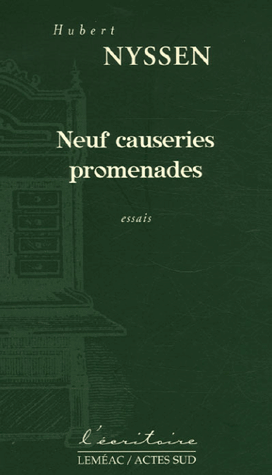 Hubert Nyssen invite le lecteur Ă Neuf causeries promenades : il note les saveurs du hasard qui lâont ramenĂ© en tant que âmembre Ă©trangerâ Ă lâAcadĂ©mie Royale de Belgique dâoĂč, jeune Ă©tudiant, il sâĂ©tait vite Ă©chappĂ©, rend hommage Ă Victor Hugo et Ă ses prises de position politiques, surtout contre la peine de mort. Il raconte les « trois mille pages de Giono », correspondance tĂ©moin dâune relation de trente ans, les coĂŻncidences qui le lient Ă Simenon, Ă©voque Albert Cohen et Colette, digresse sur les arbres et conclut sur ce mas provençal enfin trouvĂ©.  Dans ce mĂ©lange hĂ©tĂ©rogĂšne de confĂ©rences, lettres ou essai, presque sur un ton de confidence, lâauteur vagabonde dâĂ©vocations personnelles en clins dâoeil littĂ©raires, anecdotes Ă©rudites et pensĂ©es philosophiques, pour le plaisir du lecteur.