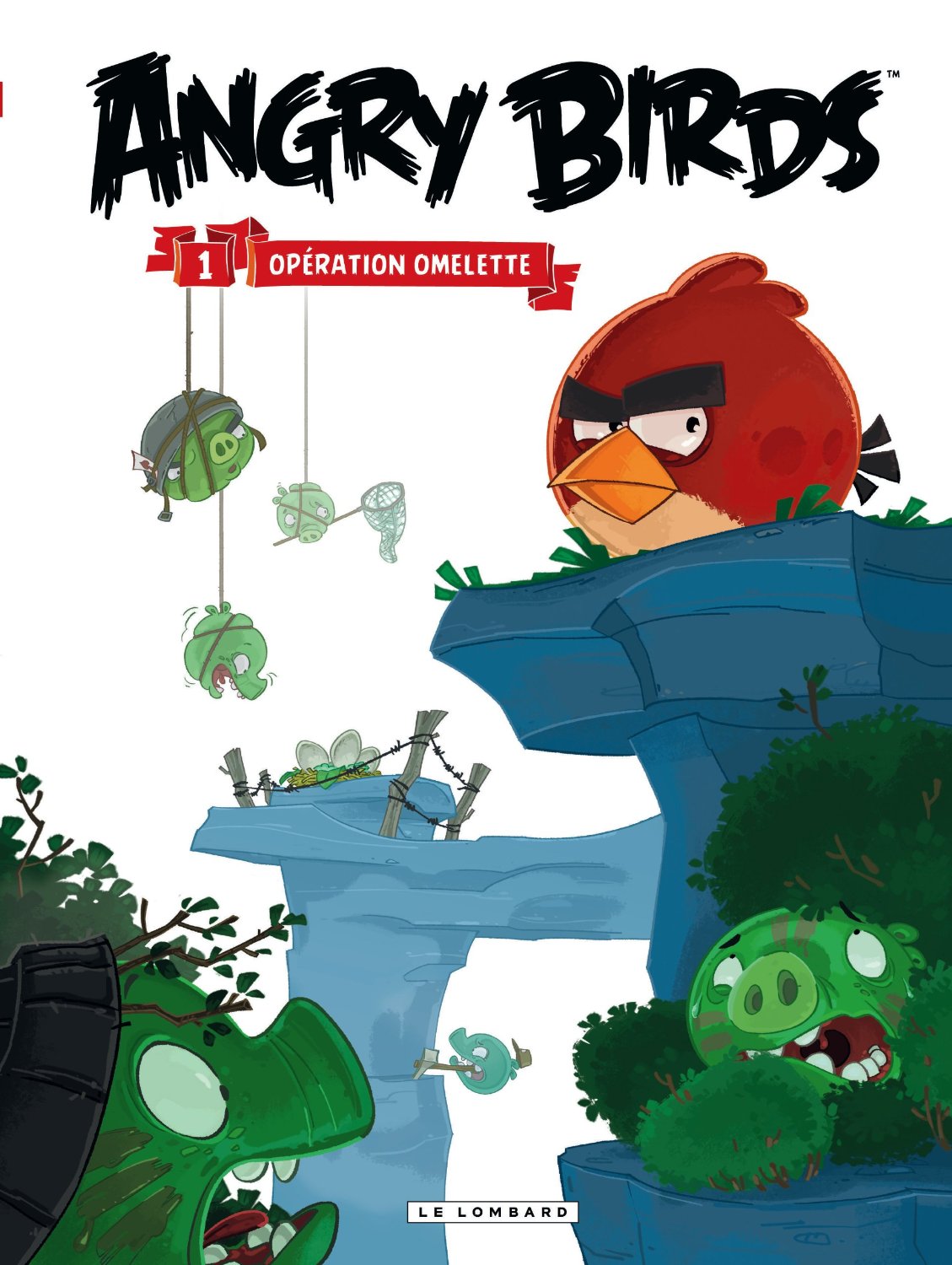 Le phénomène Angry Birds fait son entrée dans la bande dessinée avec ce premier tome d’une série annoncée. Après un bref exposé de la situation, une double page brosse rapidement les fiches d’identité de ces drôles de protagonistes, réduits à une tête toute ronde. S’ensuit une série de sketchs plus ou moins longs, aux scénarios toniques où sont narrées avec humour les folles tentatives d’une troupe de porcelets verts qui s’escriment sans succès à dérober les oeufs de leurs voisins, volatiles exubérants et teigneux. Le graphisme et la couleur survitaminent cette opération omelette.