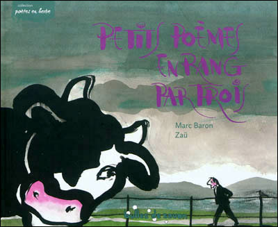 À raison de trois par page, le recueil propose plus de quatre-vingts petits poèmes de trois lignes, à savourer à son gré. Le rythme ternaire convient parfaitement à ce parcours-promenade en poésie. À chaque page, un poème donne le la ; les deux autres, écrits plus petit, suivent en mineur. Un même mot sert de trait d’union pour évoquer, pêle-mêle, le chat, la pluie, le chemin, la rose, le bonheur, l’inquiétude, l’attente… Il suffit de se laisser porter : un peu comme dans les haïkus ou dans la poésie de Guillevic, chaque phrase suggère une scène, tantôt légère, tantôt grave, pour éveiller au monde sensible et aux émotions. Le poète est là, présence rassurante : il interpelle, il guide, se met lui-même en scène, partageant avec nous la fragilité du monde et sa richesse. Rien de monotone dans cette mise en forme maîtrisée comme une scansion. En toile de fond, les illustrations sont en résonance avec les textes qui en émergent : elles donnent à chaque double page sa tonalité particulière, son mouvement propre, explicitent le sens, vibrent, comme les mots, de force poétique.