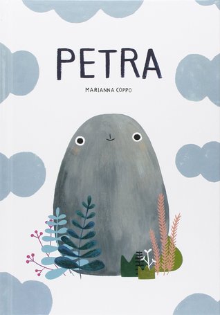Petra est une montagne qui brave le temps et les éléments, solide et fière. À moins qu’elle ne soit un modeste caillou que le chien attrape dans sa gueule et rapporte à son maître. Mais de ce destin-là, elle ne veut pas. Lancée, elle atterrit dans un nid, alors elle s’imagine oeuf remplie de surprises à venir – dinosaure, pingouin, ornithorynque. Chassée par le parent oiseau, elle échoue dans une mare : la voici île paradisiaque. Cueillie par une main d’enfant, peinte en bleu, elle sera finalement un éléphant, et ça lui plaît. Et demain ? Elle a confiance ! Les dessins épurés sur fond blanc proposent un univers plein de douceur et de poésie dans lequel trône Petra, reine imaginaire des identités qu’elle s’invente. Posée comme énorme et immuable dans les premières pages, avec ses deux yeux fixes posés sur le lecteur, elle ménage la surprise de sa taille réelle. Quand surgit le museau du chien, la stupéfaction est totale ! Son expression, minimaliste, tient toute entière dans les deux traits de son nez. Son hiératisme contraste avec le décor qui change autour d’elle, au gré de son imaginaire ou des circonstances. Jouet confiant de son environnement, elle séduit par son optimisme et sa bonne humeur. (M.D.)