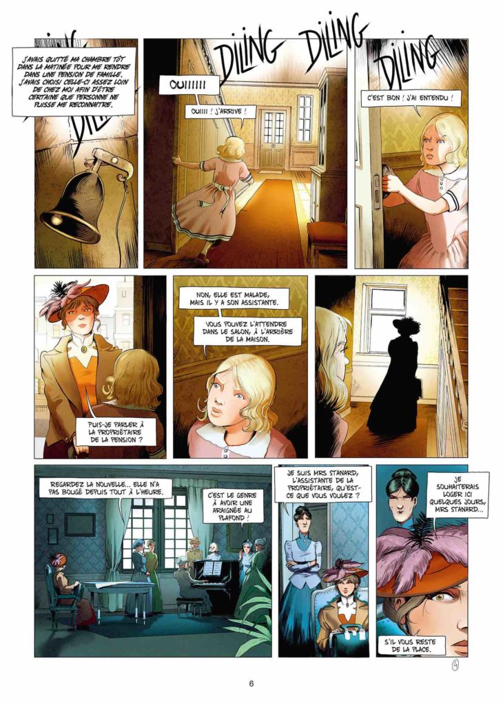 La série Pionnières des éditions Soleil met au premier plan des femmes audacieuses qui ont su s’imposer dans des univers masculins. Dans ce cadre, au lieu d’une biographie «classique», l’auteur Jarry a créé une intrigue policière autant que journalistique avec la découverte du rôle de Pulitzer dans la presse américaine (voir annexe). Les dessins de Guillaume Tavernier assez simples et réalistes font également la part belle à la voix off de Nellie Bly dont la volonté farouche force l’admiration.