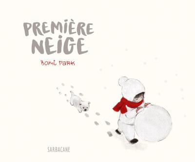 Tip … tap … taaap… Les flocons tombent, tapent au carreau et réveillent la jeune demoiselle au visage rond qui enfile manteau et bonnet avant de sortir pour admirer ce blanc si pur. D’un amas de flocons elle fait naître une boule de neige qui grossit à mesure qu’elle avance en ville, puis au travers des champs et forêts. Jusqu’à retrouver, dans un champ, des dizaines de congénères avec leurs boules géantes. L’histoire quasi muette est narrée au travers de peintures sur toile en noir et blanc, avec une unique note de rouge – l’écharpe – pour amplifier ce paysage hivernal. Elle débute la nuit, et sur l’image sombre d’un noir intense contrastent les flocons. Le réalisme laisse place à l’onirisme au fur et à mesure de la progression de la fillette : dans la forêt, elle croise ours et cerfs, et dans la plaine parsemée d’enfants et de bonshommes de neige, certains s’envolent comme des ballons à l’hélium. Un souffle poétique anime ce magnifique album, à feuilleter en rêvant. (L.H.)