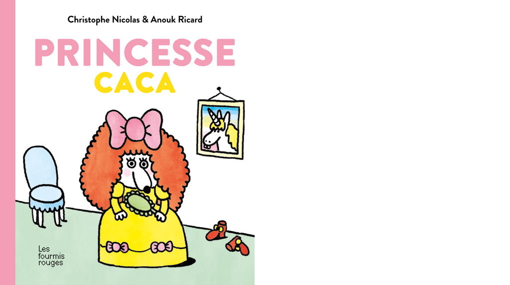 Princesse a une jolie robe jaune, de jolis cheveux roux et aime bien quâon la regarde. Mais ce quâelle aime par dessus tout, câest aller jouer avec Coco, son copain Ă lâallure de Cro-Magnon. Ensemble, ils jouent⊠dans la boue ! Tous les prĂ©textes sont bons pour se salir de la tĂȘte au pied. Et sâil reste un bout de tissu propre ? QuâĂ cela ne tienne, on se roule Ă nouveau dans la boue ! AprĂšs cela, lecteur, auras-tu envie dâembrasser Princesse ?  Princesse Caca joue Ă©videmment sur lâhumour. Entre le mot « caca » dans le titre et le jeu de se salir, il entre parfaitement dans le quotidien des enfants. NĂ©anmoins, le texte nâest pas trĂšs recherchĂ©. Le ton se veut humoristique et dĂ©calĂ©. Lâauteur fait participer le lecteur, le faisant embrasser ou frotter le livre. Les illustrations dâAnouk Ricard, caractĂ©ristiques et aux couleurs tranchĂ©es, sont amusantes et les personnages expressifs. Un autre titre est sorti simultanĂ©ment, Coco Bagarre. Les introductions et la fin sont identiques dâun album Ă lâautre. (L.-L.D.)