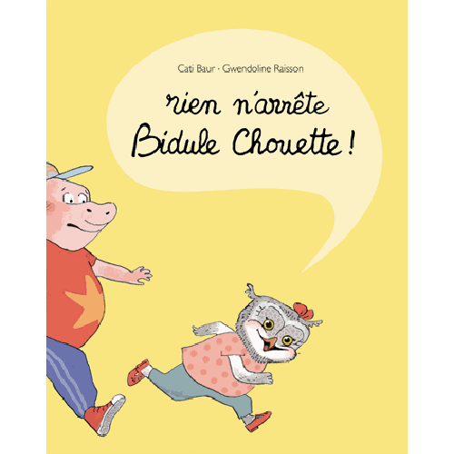 Bidule Chouette fonce dans la vie, coiffée d’un joli noeud rouge dans les plumes ; elle a des idées très arrêtées. Pas question d’avancer avec ses nouvelles chaussures si la Duchesse (sa mère, bien sûr) ne lui offre pas une glace. Quand un monstre rose gluant survient et s’apprête à dévorer son copain Ramone El Cochon, elle chasse l’engeance d’un bon coup de pied. Dans deux autres épisodes, le scénario se répète. De grandes cases non cernées et des pleines pages déroulent ces histoires simples d’amitié et d’entraide pour les tout jeunes lecteurs. Cette jolie transition de l’album à la BD est peinte de couleurs fraîches. Les personnages sont anthropomorphisés avec malice : la Duchesse porte des talons aiguille et un petit sac, un chien vend des glaces hanneton-vert de terre et autres détails qui feront rire : cette superhéroïne joyeuse et le monstre Chamallow sont faits pour ça.