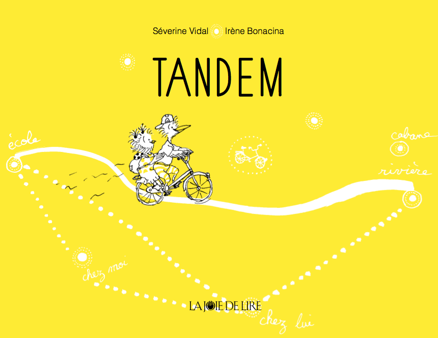 C’est très mignon, du texte à la fois sentimental et sobre au dessin au trait fin un peu tremblé, coloré d’un petite pointe de jaune (comme le soleil de l’amitié qui réchauffe les coeurs?), qui trace le cadre quasi bucolique de cette amitié instantanée et idéale. Mais il n’y a pas d’autre histoire que ce portrait d’un garçon et d’une fille de 8 ans, dans un décor, école ou activités pratiquées, qui évoque plus les années 60 qu’aujourd’hui (une façon d’inscrire cette relation dans l’intemporel?). Et c’est quand même – gentiment, délicatement – mièvre… (M.D.)