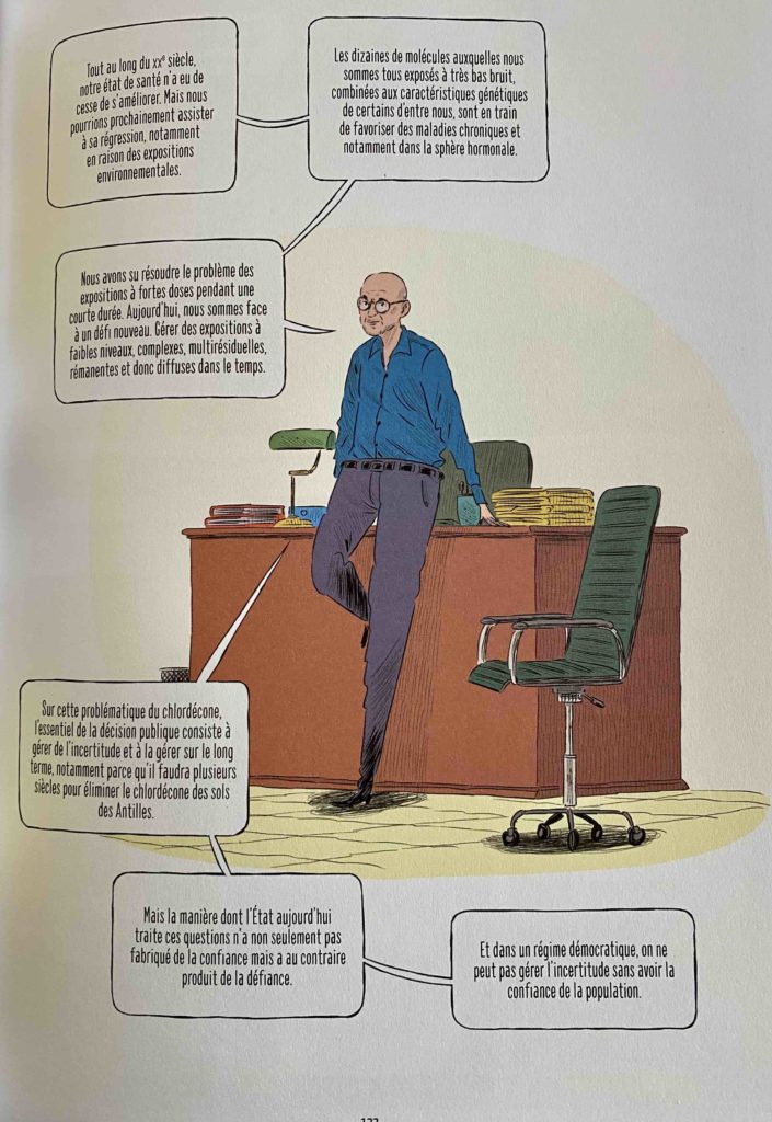 La banane antillaise, pilier de l’économie locale et garante de la paix sociale, a été traitée au chlordécone de 1972 à 1993. Ce pesticide, dont la toxicité était pourtant bien connue, a continué à y être utilisé pour lutter contre les charançons qui ravageaient les bananeraies. Quelques décennies plus tard, les statistiques de cancers de la prostate ont monté en flèche ; les analyses des sols révèlent des concentrations extrêmement élevées du produit, et les rivières et rivages antillais eux-mêmes sont contaminés, menaçant toute l’agriculture, la pisciculture et la pêche en mer.