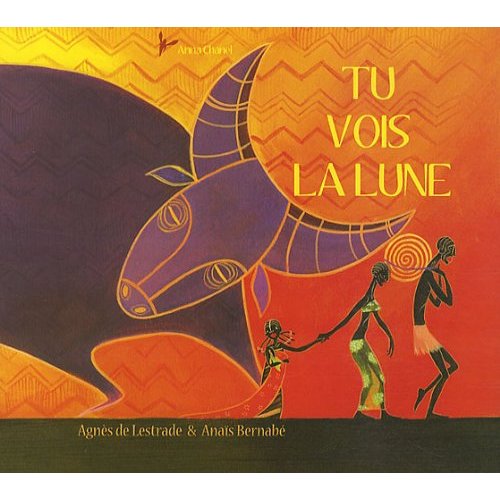 Tu vois la lune est le rĂ©cit, en texte et images, dâun exode Ă travers lâAfrique, vers une terre promise : la lune. Une fillette raconte, avec une belle simplicitĂ©, ce quâelle a vĂ©cu : le dĂ©part du village oĂč il nây a plus Ă manger ni Ă boire, la longue marche en famille jusquâĂ la mer, lâembarquement clandestin et coĂ»teux, la route, en camion, lâarrivĂ©e enfin, en un lieu inconnu, oĂč lâeau coule merveilleusement dâun robinet. Le thĂšme douloureux de lâexode est traitĂ© sans trahir la vĂ©ritĂ©, avec pudeur et Ă©lĂ©gance, comme un cheminement vers la lumiĂšre⊠puisque lâhistoire sâarrĂȘte avant le probable dĂ©senchantement de la rĂ©alitĂ©. Lâillustratrice sert magnifiquement le texte, avec des images stylisĂ©es fortes, en double page, qui explicitent, par le jeu des couleurs, la duretĂ© du voyage, mais aussi la chaleur humaine qui le traverse et la confiance en lâavenir qui lâaurĂ©ole. AgnĂšs de Lestrade signe avec AnaĂŻs BernabĂ©, illustratrice, une premiĂšre collaboration trĂšs rĂ©ussie pour un album beau et poignant.