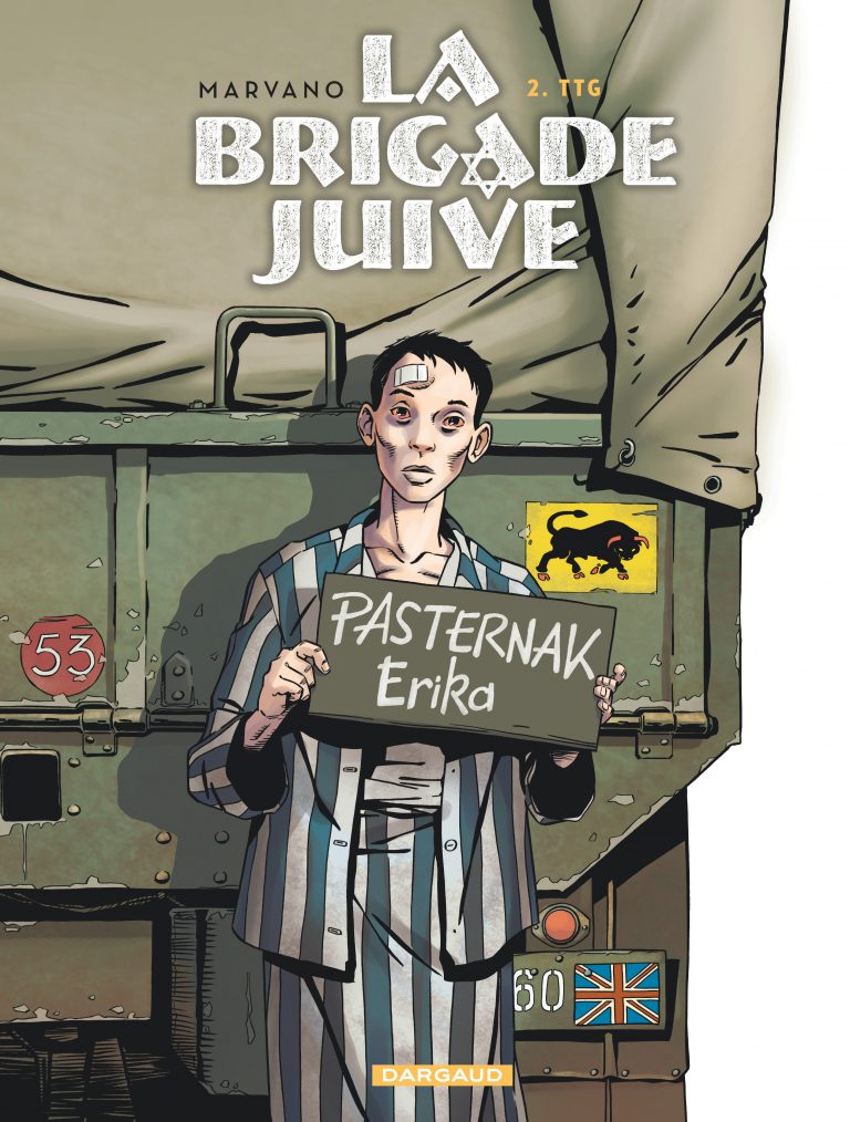 Juin 1945. Membres de la Brigade juive, revĂȘtus dâun uniforme britannique frappĂ© de l’Ă©toile Ă six branches, Ari et LeslieâŠ