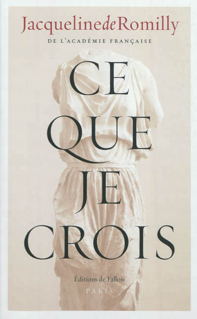 DĂ©cĂ©dĂ©e en 2010, Jacqueline de Romilly ne souhaitait pas que fut publiĂ©, de son vivant, ce livre consacrĂ© Ă saâŠ