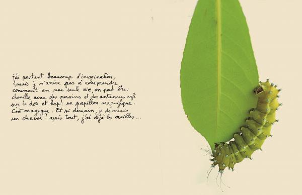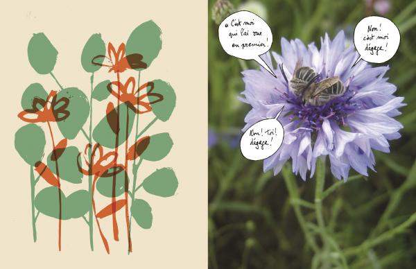 Bien que le caractère anthropomorphe d’Edmond ne repose ni sur les parures ni les attitudes comme chez Pierre Lapin, il est bel et bien le sujet de l’histoire, pattes et perceptions bien ancrées dans le sol. Entre deux brins d’herbe et deux brindilles, il s’interroge sur les expériences des uns et des autres (il philosophe), fait l’étude des caractères de ses compagnons, ose des comparaisons visuelles (« Brindille : phasme sans pattes »), partage émotions et jeux entre bestioles, entre deux jeux de mots.