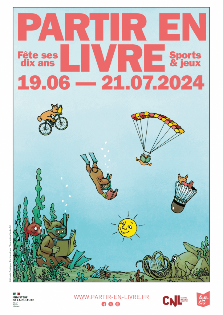 ♦ Partir en livres du 19 juin au 21 juillet : Claude Ponti sera le parrain du Festival 2024 dont il a réalisé l’affiche.