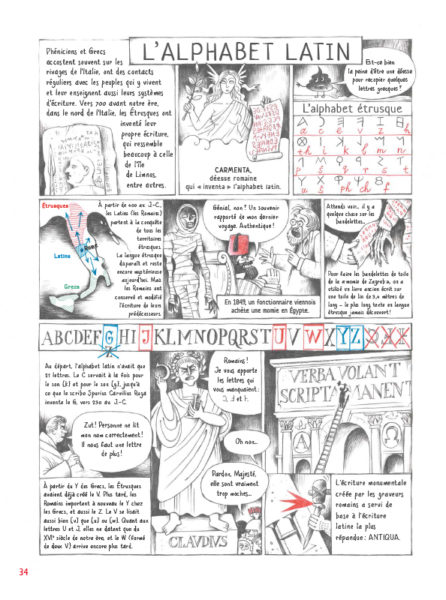 Comment est née l’écriture ? Cet album grand format, au beau papier épais, répond à la question de façon originale, loin des documentaires traditionnels, en s’appuyant sur de solides recherches.