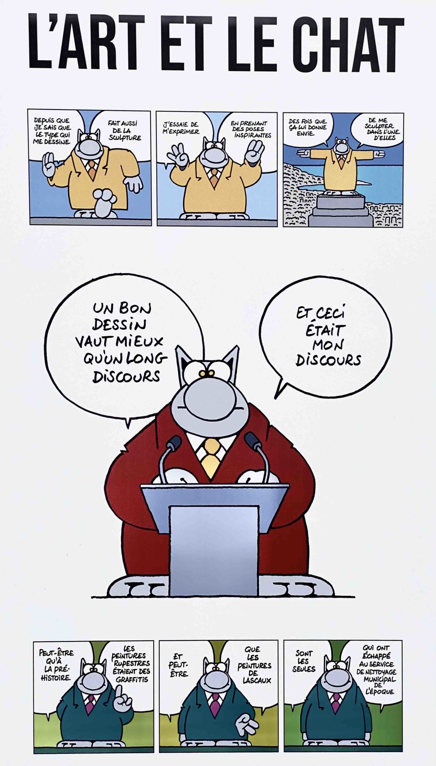 Avenue Matignon, la Galerie Huberty-Breyne expose des Ćuvres prĂ©paratoires Ă ces sculptures, mais aussi des estampes, des sculptures de petit format et des toiles inĂ©dites dans une exposition, Philippe Geluck Ă Matignon.