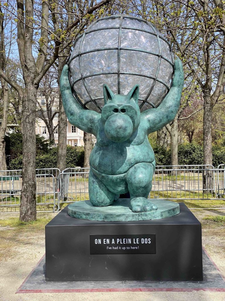 Vingt sculptures de bronze du Chat de Geluck sâexposent sur les Champs-ĂlysĂ©es jusquâĂ la fin du mois de juin.