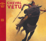 Noir, puissant, caparaçonné, un cheval traverse la plaine des pages de garde, à la recherche de trois myrtilles, la belle…